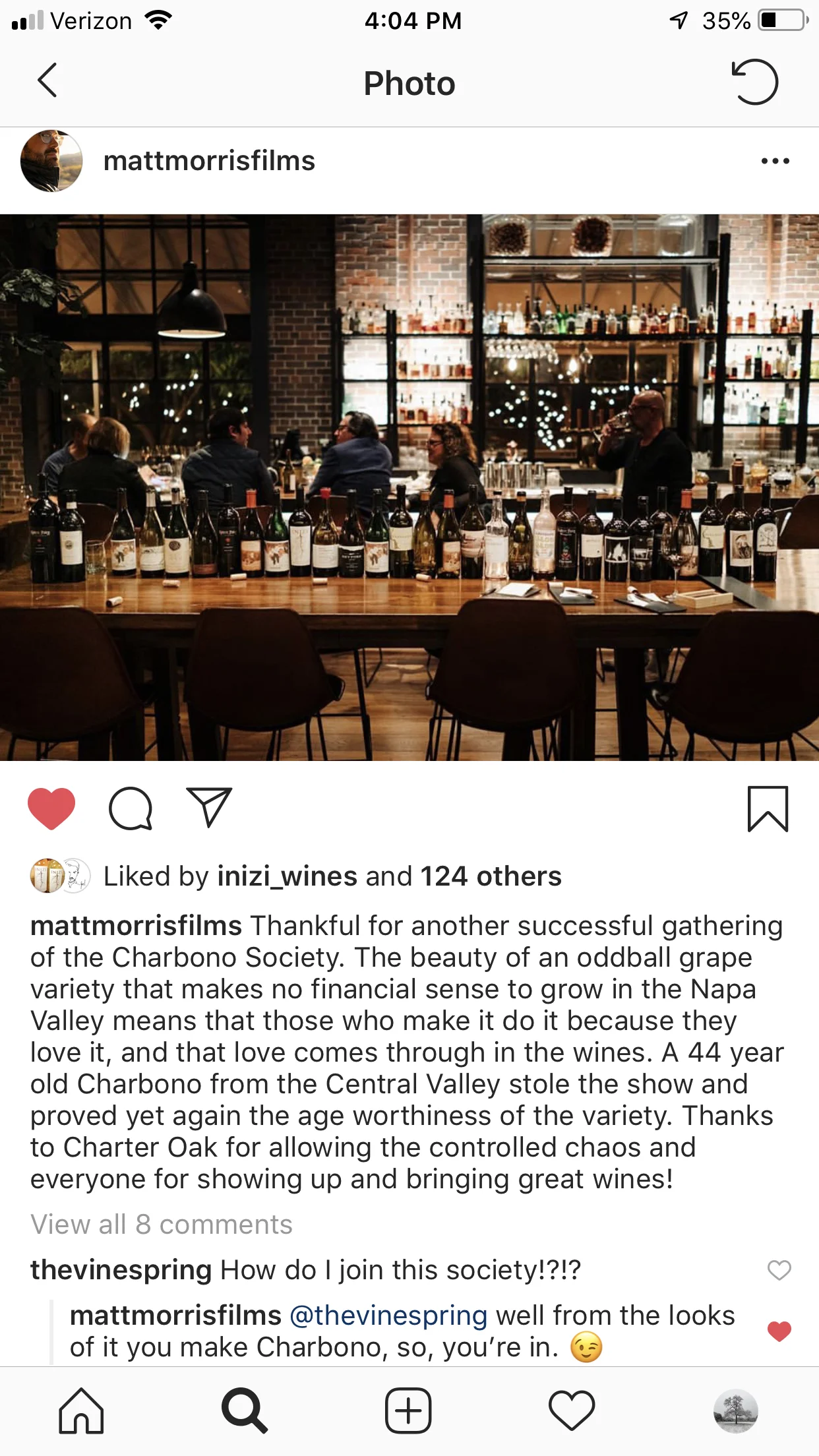 I get a lot of raised eyebrows when I mention that we’re planting…Charbono? The nerd in me immediately breaks into details: “It’s rare” (blah blah blah #economics)… ”It loves diurnal weather patterns” (blah blah blah #hotdays) etc. How about something more simple: “I love it.” I’m not great with expression; for that, I’ll rely on artists like Matt Morris. He loves Charbono so much, that he’s the leader of a cult and even made a documentary about it. Here’s the “notes” from their last meeting. Could it be said any more perfectly?