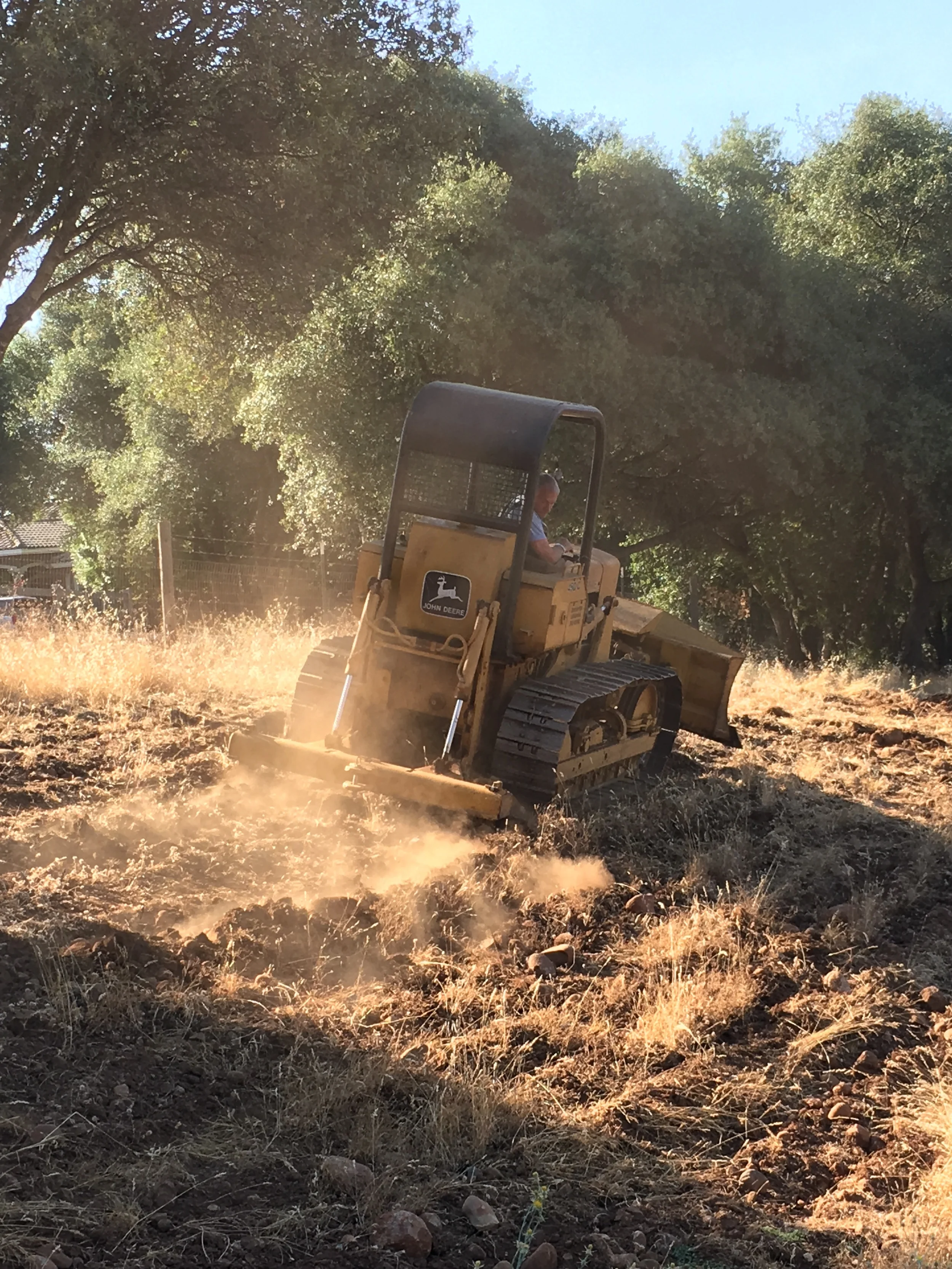The 'dozer coming to rip translates into this: A bulldozer is coming to our property to drive a "ripper" deep into the hard, dry soil throughout our property. I'll explain more about the importance of this work tomorrow. That said, it is critically important that we clearly provide boundaries to keep the dozer from ripping through power, water and sewer lines.