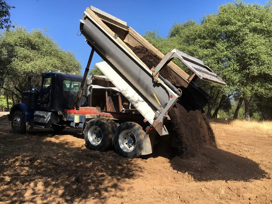 One component of healthy soil that we're introducing to our property in Springfield is local turkey compost. Today, Jessie Cover delivered roughly 20 yards of compost from Diestel Turkey Ranch. Having recently ripped the soil, we're now ready to begin spreading the turkey compost and gypsum mix to begin building our soil. In reality, we started building our soil last Fall when chose not to use a pre-emergent weed control and instead purchased a cultivator to turn over all vegetation back into the topsoil. Today's work is just another small step in producing good fruit.